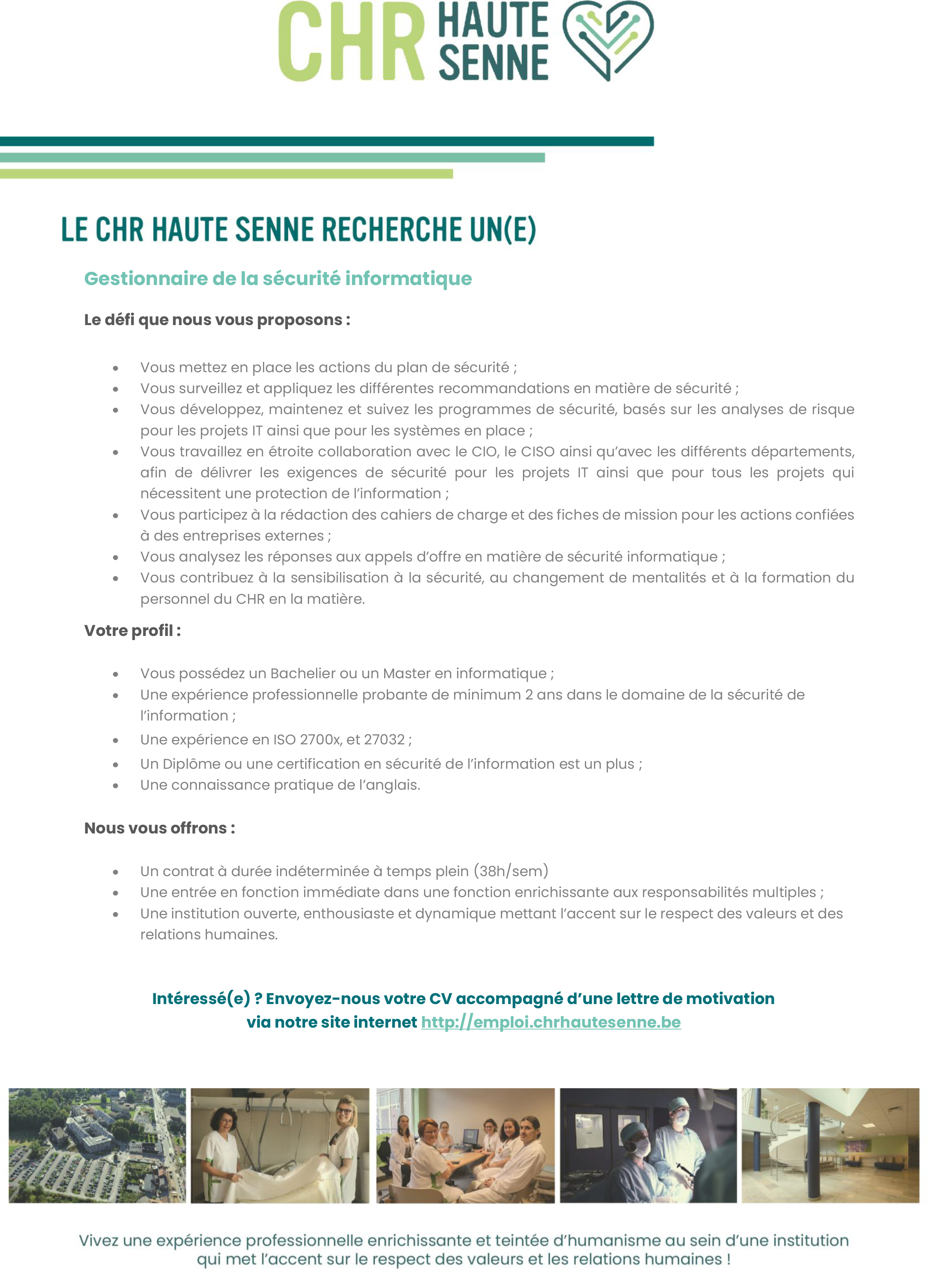 Le CHR Haute Senne recherche un(e) gestionnaire de la sécurité informatique