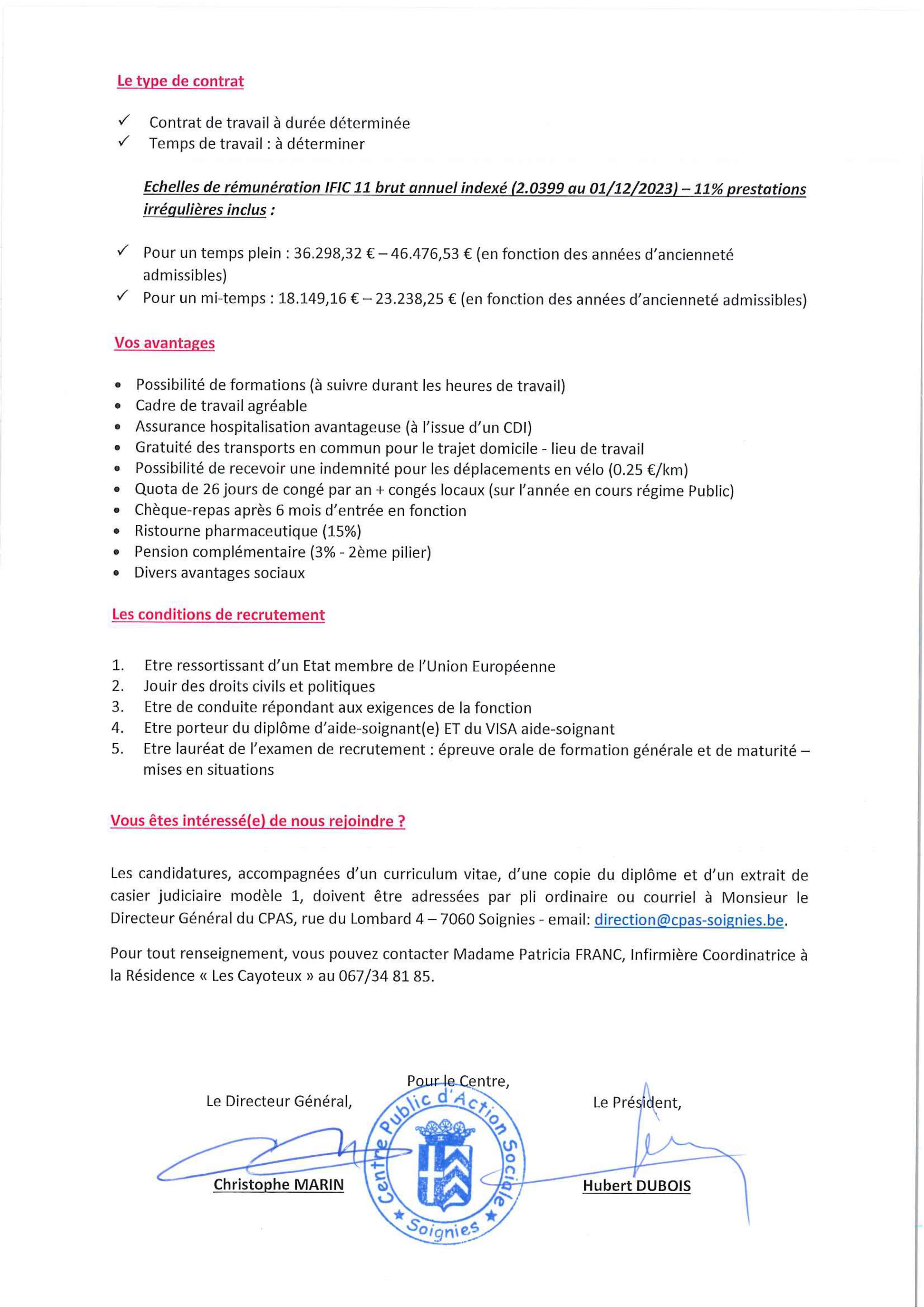 Le CPAS recrute des aides soignant.e.s pour la résidence "Les Cayoteux"