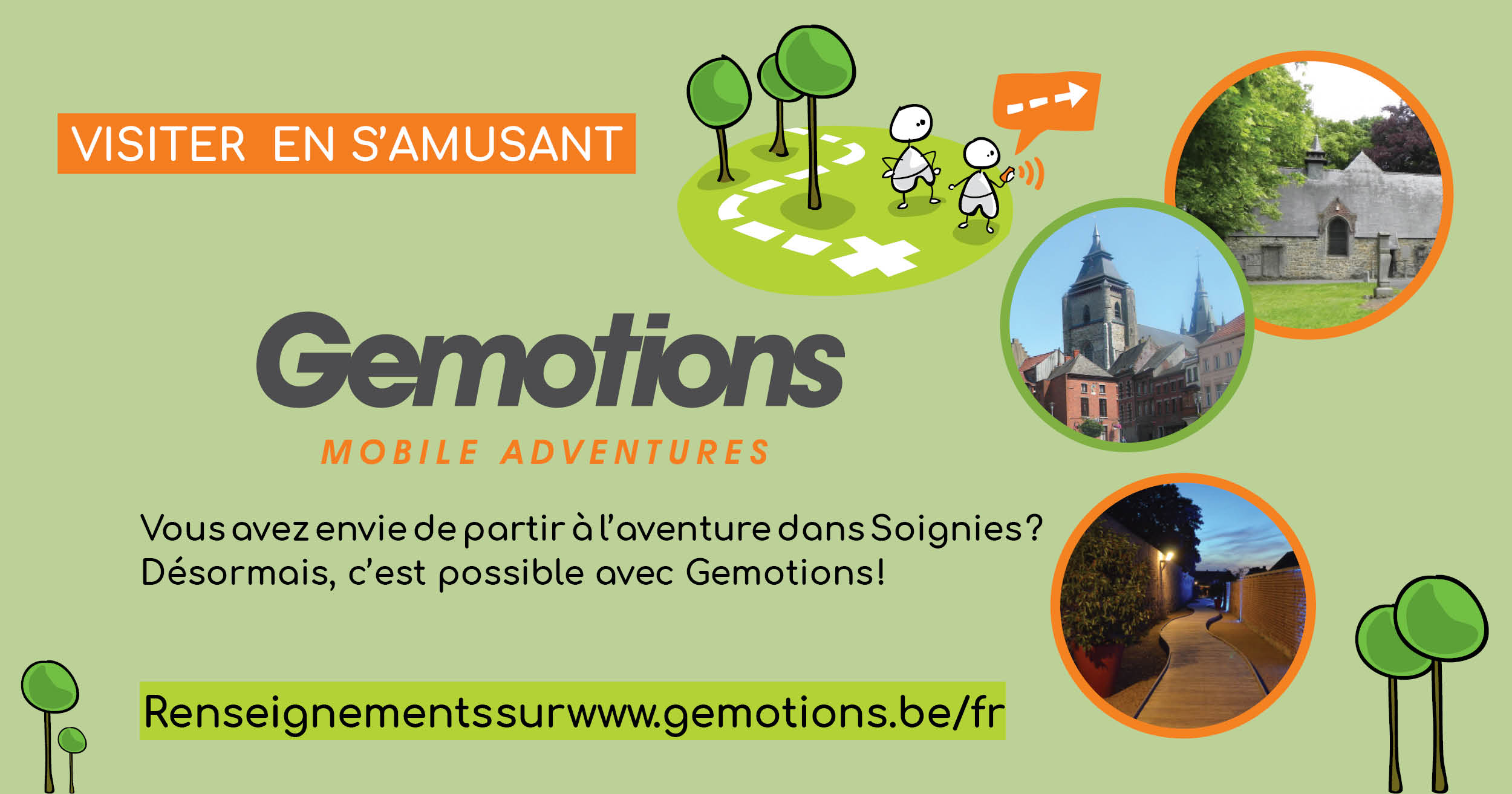 Grâce au jeu de piste « Gemotions », vous visitez la Ville de Soignies tout en vous amusant. Seul.e, en famille, entre amis, entre collègues ou en amoureux, cette application disponible au prix de 10€ plaira à tous par son côté ludique et didactique.